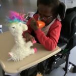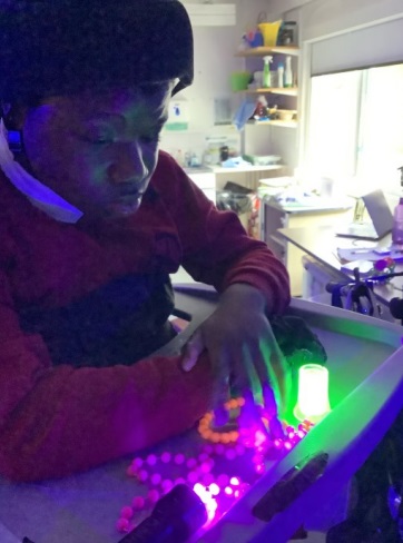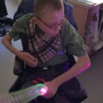 During cause and effect work we have restarted songs and lights. Some students find controlling people quite funny when we have to dance or sing. We have had activities that encourage time with a friend sharing an interest and some of the students are now looking or reaching out when they are close. We have time listening to our friends voices during a group interaction.